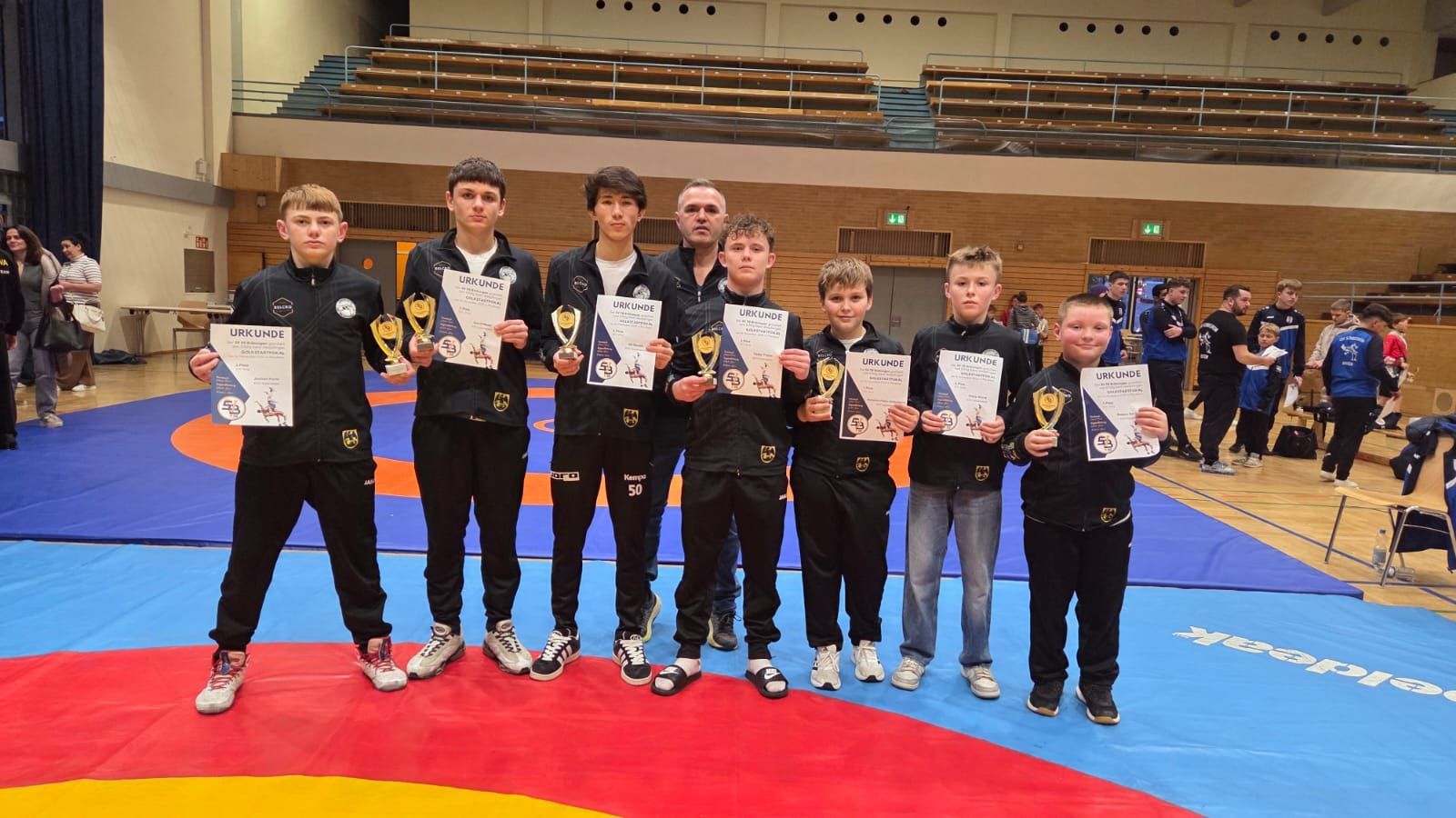 Am Sonntag den 16.11.2025 fand das internationale Goldstadtpokalturnier ausgerichtet vom SV Brötzingen in Pforzheim statt. Betreut von Viktor Laas gingen insgesamt 7 Teilnehmer von der U10 bis zu den U17 an den Start. Hierbei konnten insgesamt sechs Medaillen erkämpft werden, so wie der dritte Platz in der Mannschaftswertung in der Altersklasse der U17. Turniersieger wurden Robert Geringer in der U10 bis 46kg und Antonio-Petru Ungureanu bei der U10 bis 60kg. Die Silbermedaille sicherte sich Jochen Hurst bei den U14 bis 52kg. Auf dem dritten Platz landeten Ali Rezaie bei den U17 bis 55kg, Fedor Treise bei den U17 bis 60kg und Gerrit Meier bei den U17 bis 65kg. Knapp vorbei an dem Podest schrammte Philip Block, der auf dem vierten Platz bei den U12 bis 43kg landete.